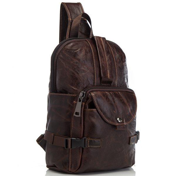 Perfect for all types of casual travel, this powerful shoulder pack lets you carry all of your most important items. Keep your everyday stuff within easy reach with this retro inspired satchel. This leather chest bag is made from lightweight and durable cowhide leather and features a roomy main compartment with several pockets for organization and an adjustable shoulder strap that makes it comfortable to wear.