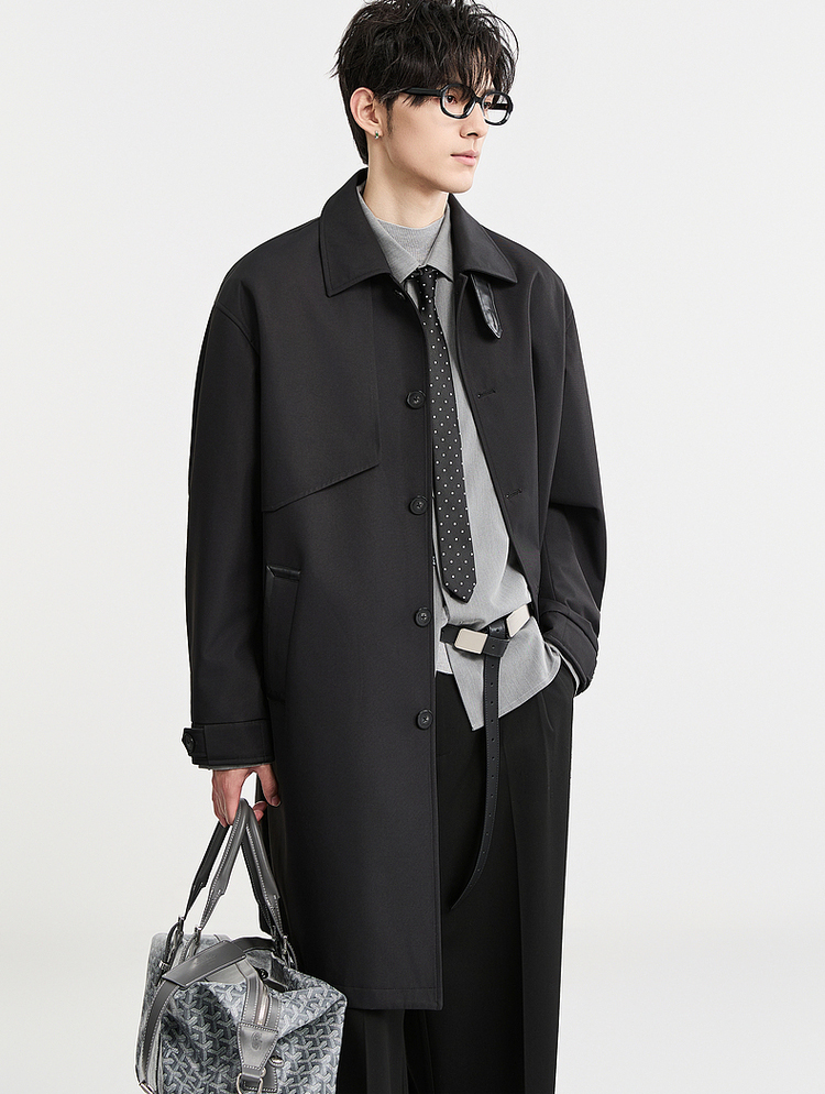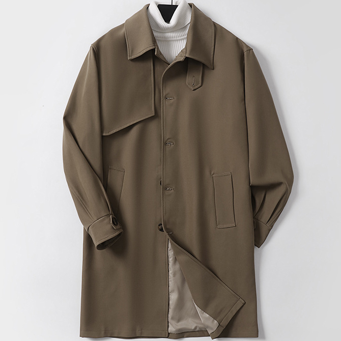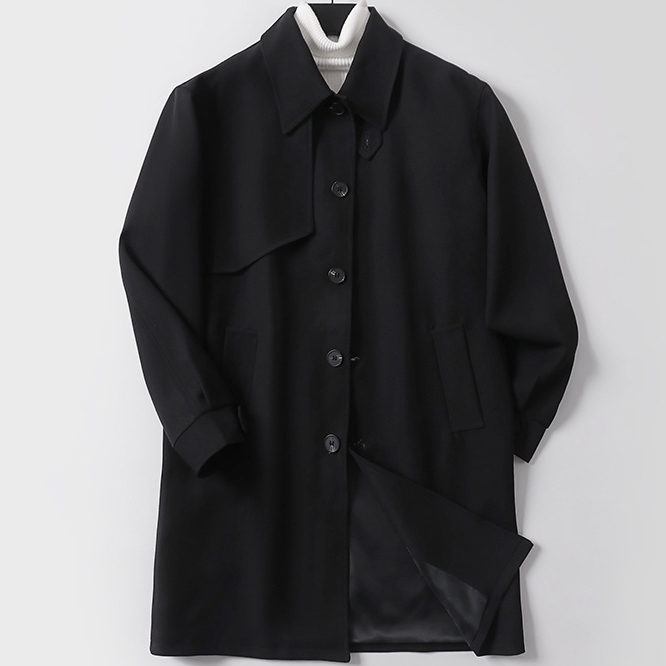 Classically single breasted balmacaan jacket. Our transeasonal trench coat features a very flattering silhouette for all men. Style it with t-shirts and jeans, tailored pants or dresses. It is a classic with endless ways to style.