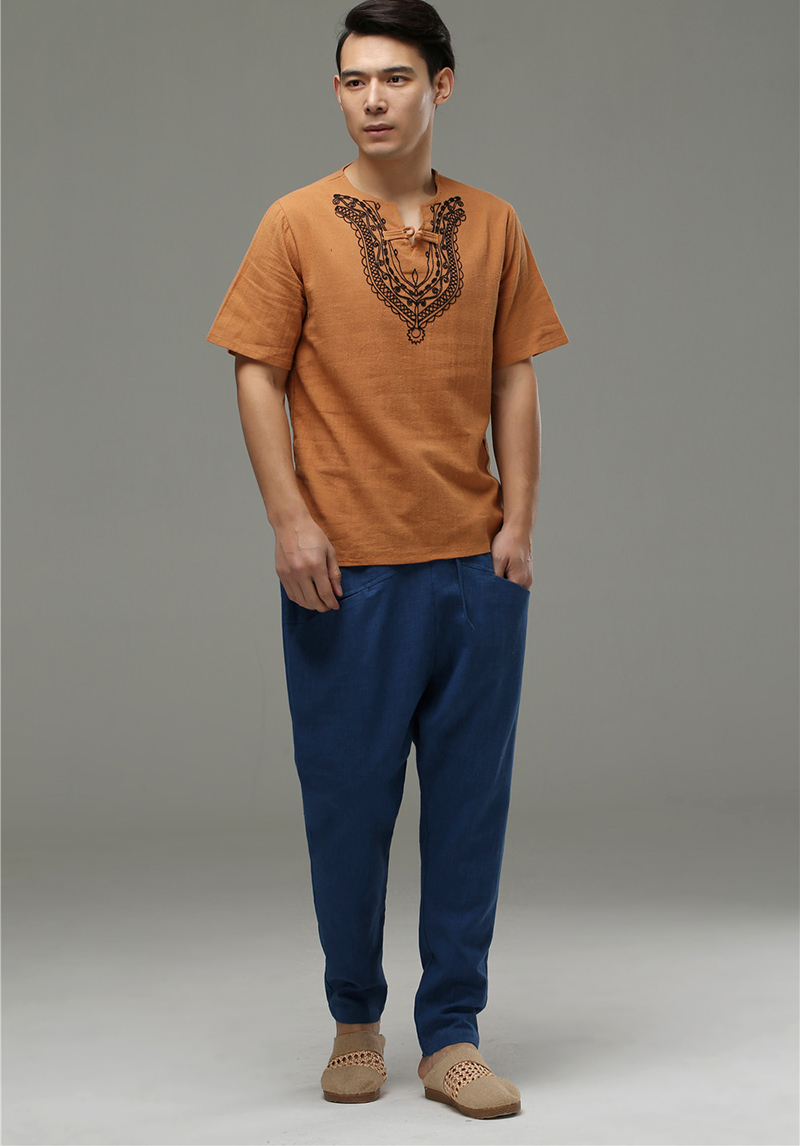 The men’s baggy harem pants are made of soft cotton and linen fabric, comfortable and lightweight, skin friendly and breathable, make you cool and relaxed all the time in summer and fall.