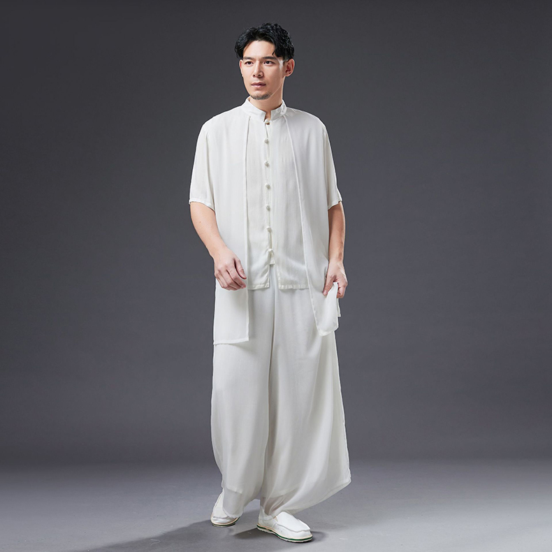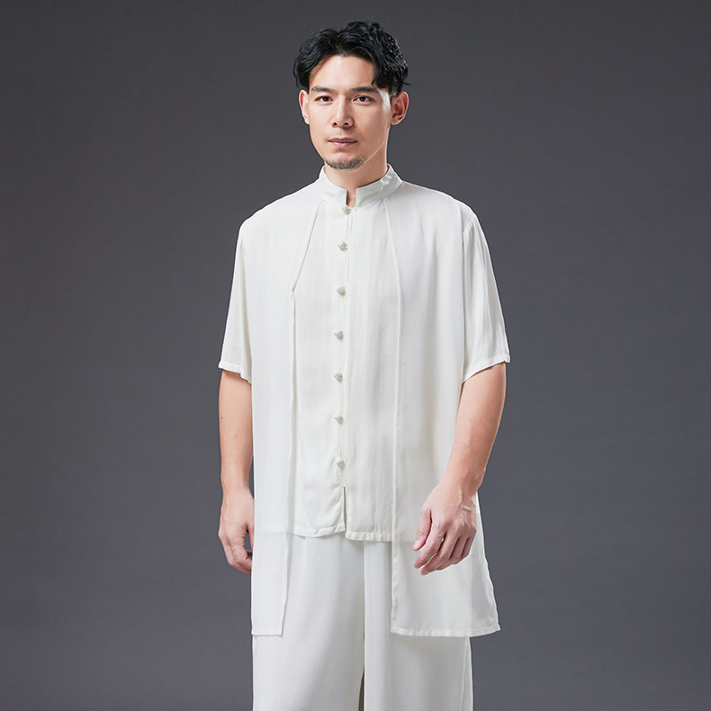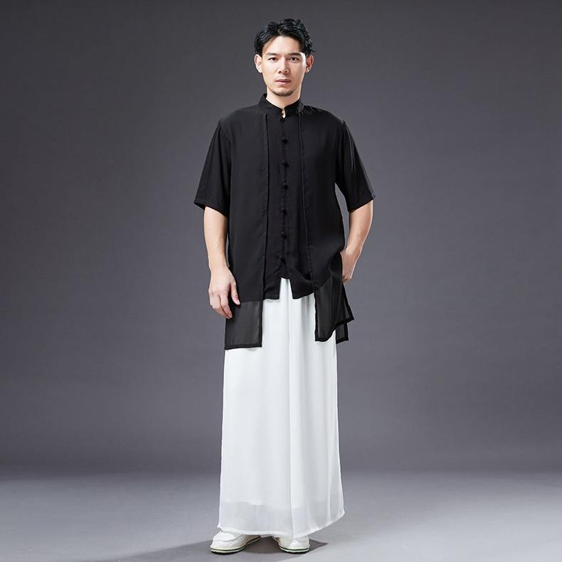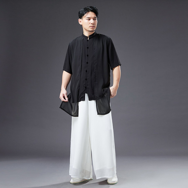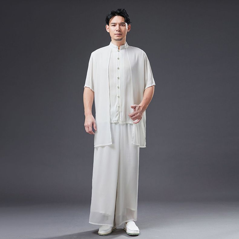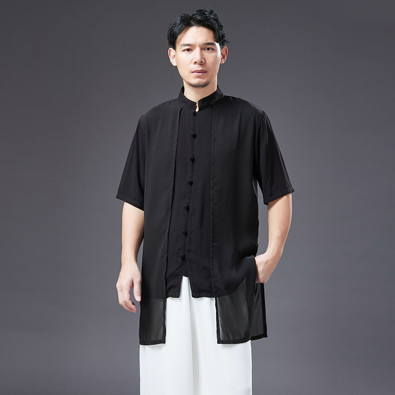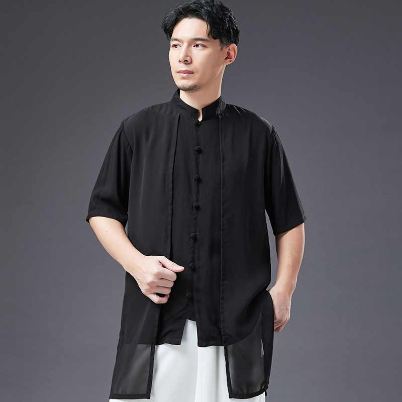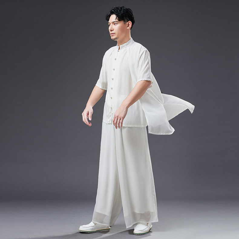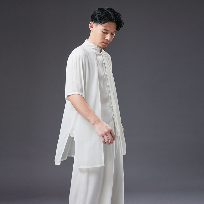 Linen short sleeve chiffon shirt is soft and elegant,skin-friendly,in tai chi practice,the uniform makes the practitioner feel comfortable,meeting the requirements of tai chi practice.