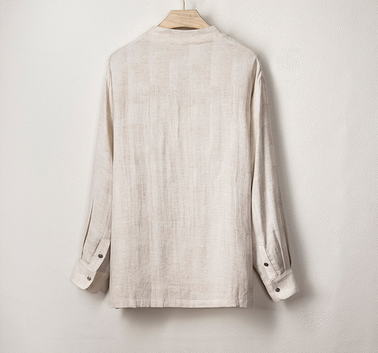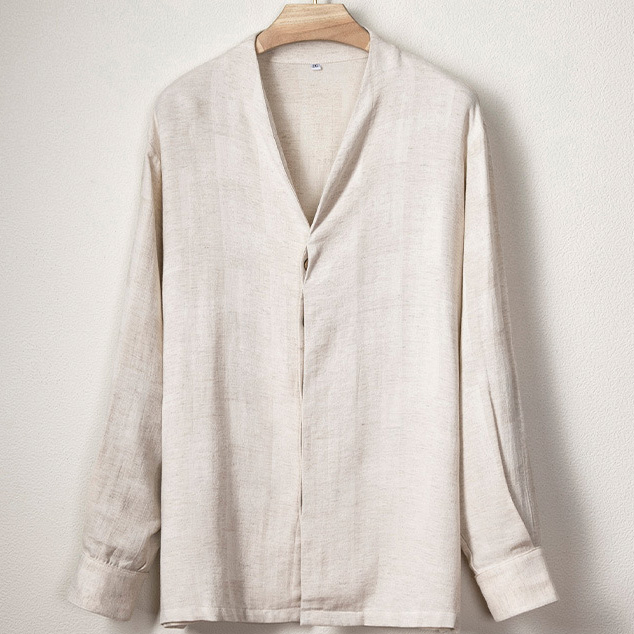 With beautiful weaving texture. Designed with a relaxed silhouette and minimal neckline detail, it flows easily across occasions and genders. Lightweight and breathable, this shirt adapts to your everyday rhythm with quiet ease.
