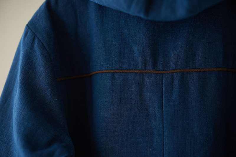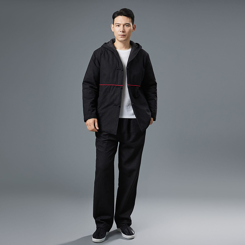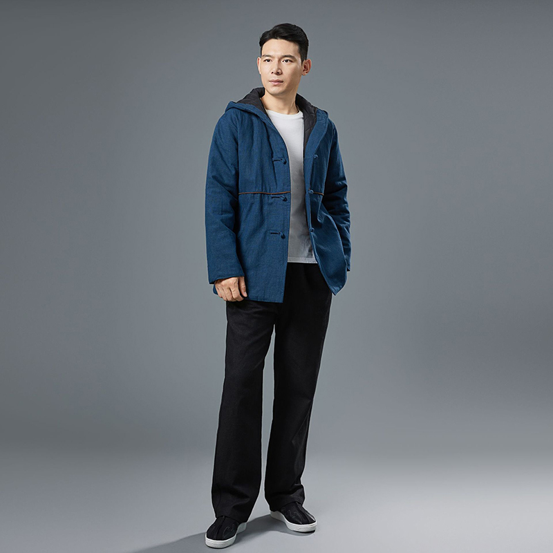 Combining traditional chinese buttoned elements with a modern hood and minimalist tailoring.